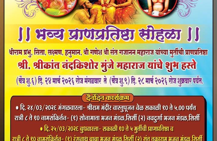 सिर्सी येथे श्री विघ्नहर्ता श्रीराम मंदिरात भव्य प्राणप्रतिष्ठा सोहळ्याचे आयोजन