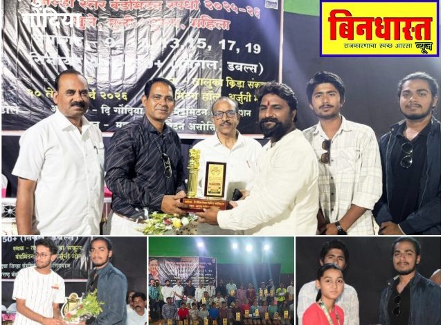 अर्जुनी/मोर: (दि २४ मार्च )तालुका क्रीडा संकुल, अर्जुनी/मोर येथे आयोजित “आमदार चषक” जिल्हास्तरीय बॅडमिंटन स्पर्धा 2025-26 चा पारितोषिक वितरण सोहळा 22 मार्च 2026 रोजी उत्साहपूर्ण वातावरणात पार पडला. जिल्ह्यातील तब्बल 284 खेळाडूंनी विविध वयोगटांत सहभाग नोंदवत स्पर्धेला मोठा उत्स्फूर्त प्रतिसाद दिला. या भव्य स्पर्धेचे उद्घाटन माननीय आमदार राजकुमारजी बडोले यांच्या हस्ते झाले. समारोप प्रसंगी विजेत्या खेळाडूंना रोख रक्कम व ट्रॉफी देऊन सन्मानित करण्यात आले.