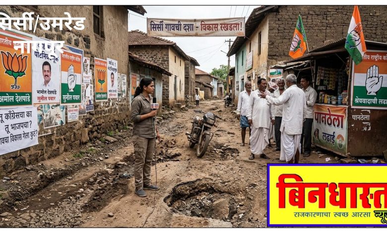 सिर्सी: (दि २२) सध्या सिर्सी गावात वार्ड क्रमांक १ आणि वार्ड क्रमांक ४ च्या पोटनिवडणुकीचे वारे वाहत आहेत. गावात ‘तू काँग्रेसचा की मी भाजपचा’ अशा वातावरणाने राजकीय पारा चांगलाच चढला असून, हॉटेलमधील पार्ट्या आणि छुप्या बैठकांना उधाण आले आहे. मातब्बर राजकारण्यांनी आपलाच उमेदवार निवडून आणण्यासाठी तगडी ‘फिल्डिंग’ लावली असली, तरी सामान्य ग्रामस्थांमध्ये मात्र संतापाची लाट आहे. नेत्यांच्या श्रेयवादाच्या लढाईत गावाचा विकास मात्र ‘कोई मिल गया’ चित्रपटातील ‘जादू’सारखा गायब झाला असल्याची चर्चा आता गावच्या पानठेल्यांवर रंगू लागली आहे.