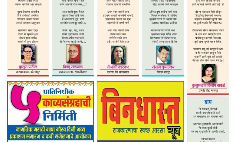 आरोग्य व शिक्षणई-पेपरकवितानागपूरपरीक्षण लेखविदर्भसाहित्यगंध